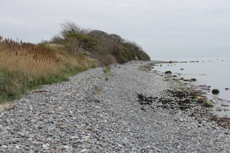 Beowulf and his crew sight land – shining cliffs, high rocky shores and broad headlands; their journey is at an end. They anchor their ship and unload using the gangplank. They have a confrontation with the Danish coastguard who agrees to show them the way to Heorot for an audience with Hrothgar. The path is stone paved but Gordon translates this as a path paved with stones of various colours. The path guided the men together or kept them in marching order (various translations). These features can all be seen in the landscape of Møn.