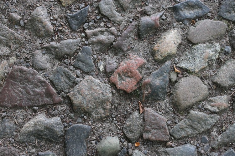 Boulders and stones accumulate at the bottom of the chalk cliffs. Most are grey coloured flints but there are other hard rocks, left on the surface by glaciation, that are used for building paths.
